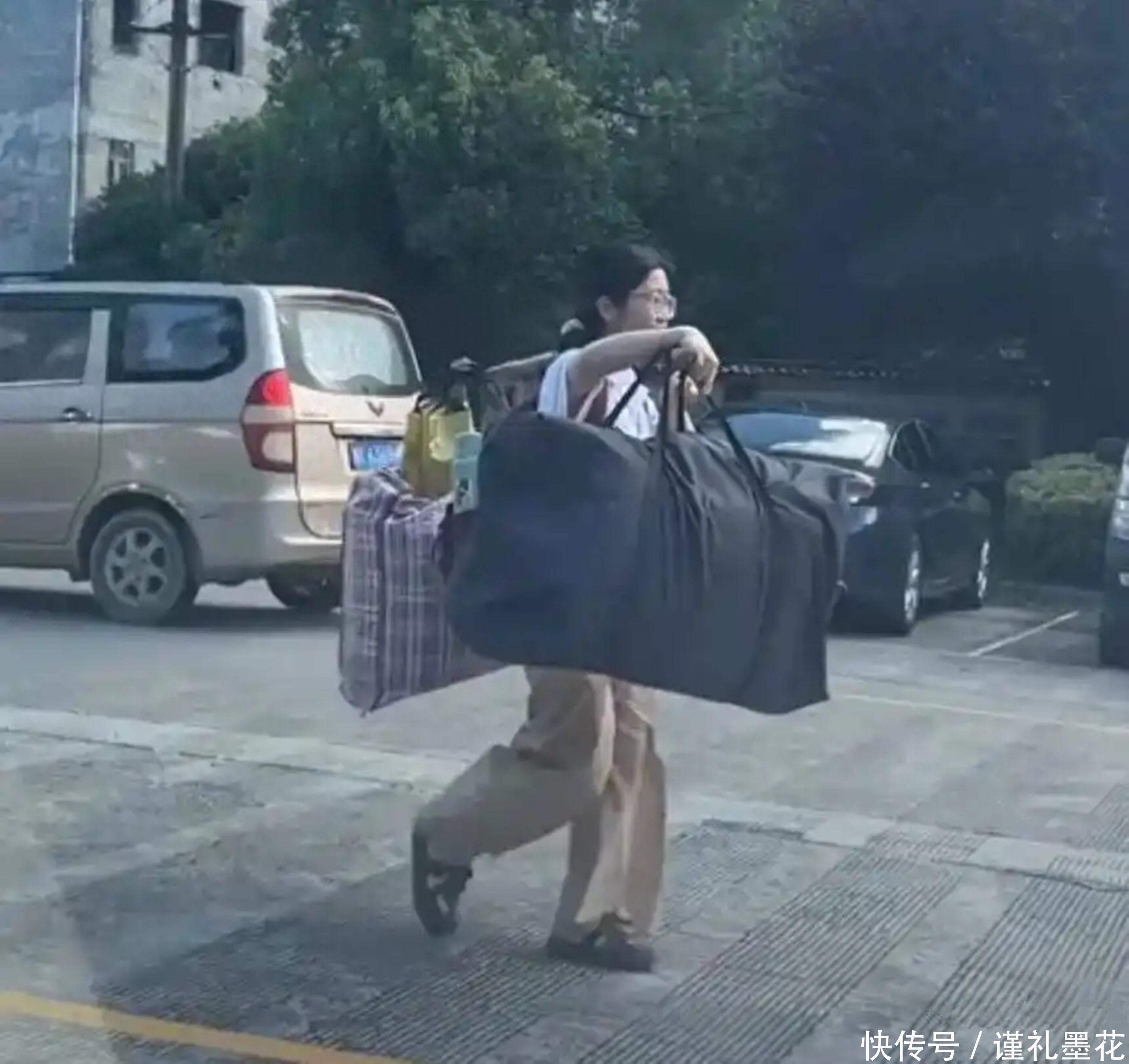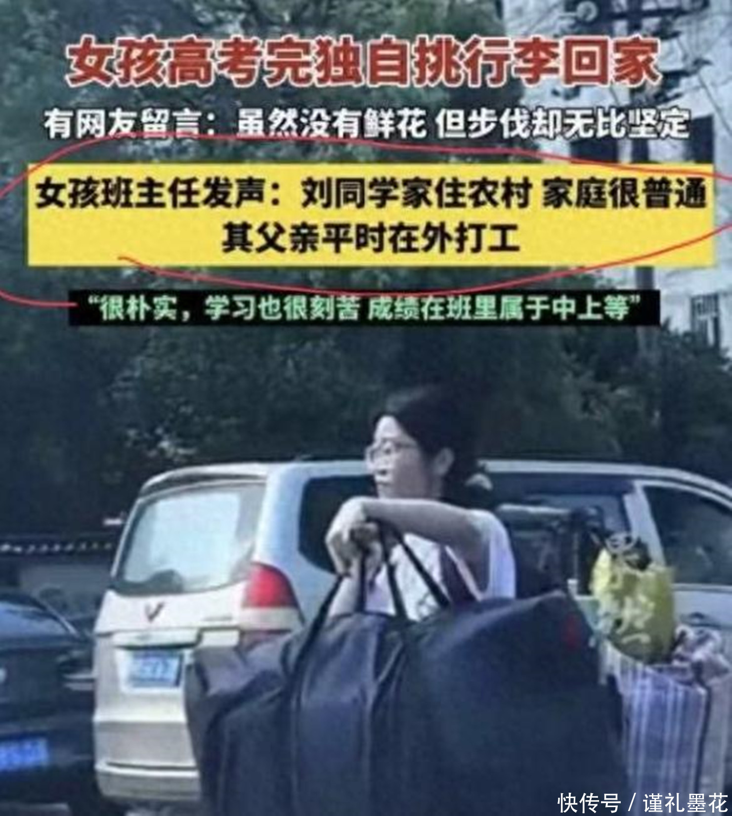 而且根据学校班主任的证实,她之所以用扁担挑着行李,是因为当天高考学校人流量太大,父母骑着摩托车不方便在人群中穿梭。